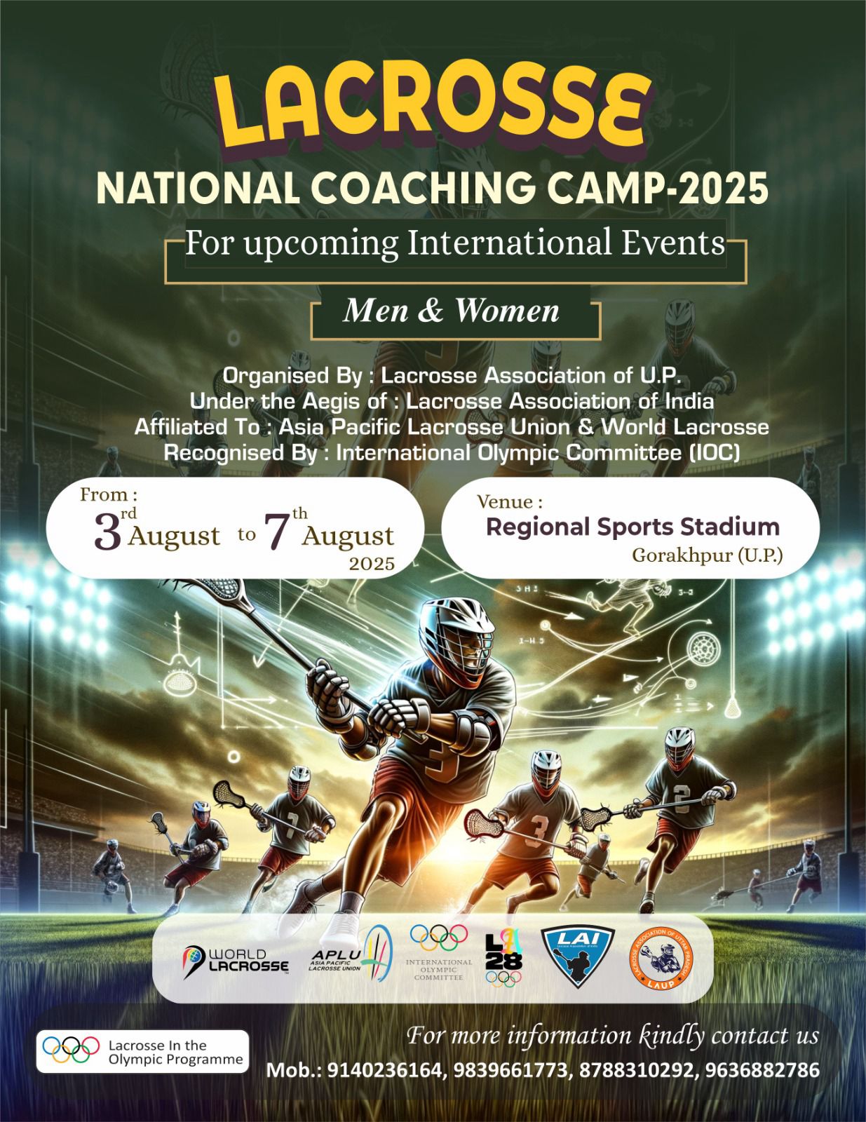 Asian Lacrosse Games 2025 (Men & Women) is going to be held at Al-Shabaad Athletic Club, Riyadh (Saudi Arabia) from 1st to 5th October 2025, hosted by Saudi Lacrosse Federation under the aegis of Asia Pacific Lacrosse Union & World Lacrosse.National Coaching Camp (Men & Women) - Lacrosse Association of India (LAI) At Gorakhpur, Uttar Pradesh